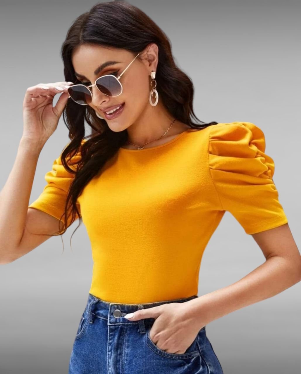 Top unicolor tejido de canalé de manga farol